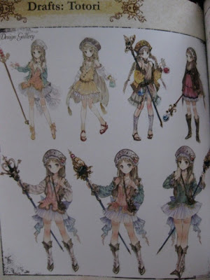 Some of the early designs of Totori look great, too! I'm not a fan of the version pigtails, but I almost prefer the top one with the yellow dress to her final design. It's really interesting to see what could have been!